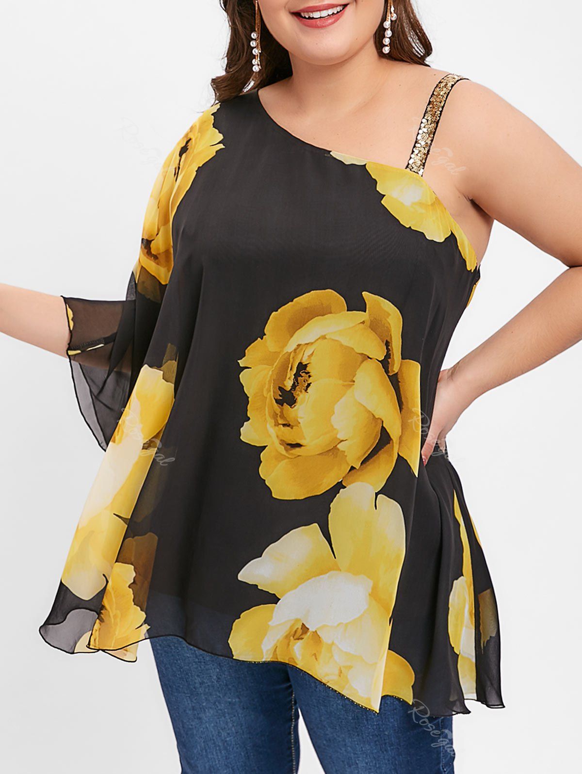 Floral Print Plus Size Sequin Embellished Blouse Discounted at only: US$ 14.99