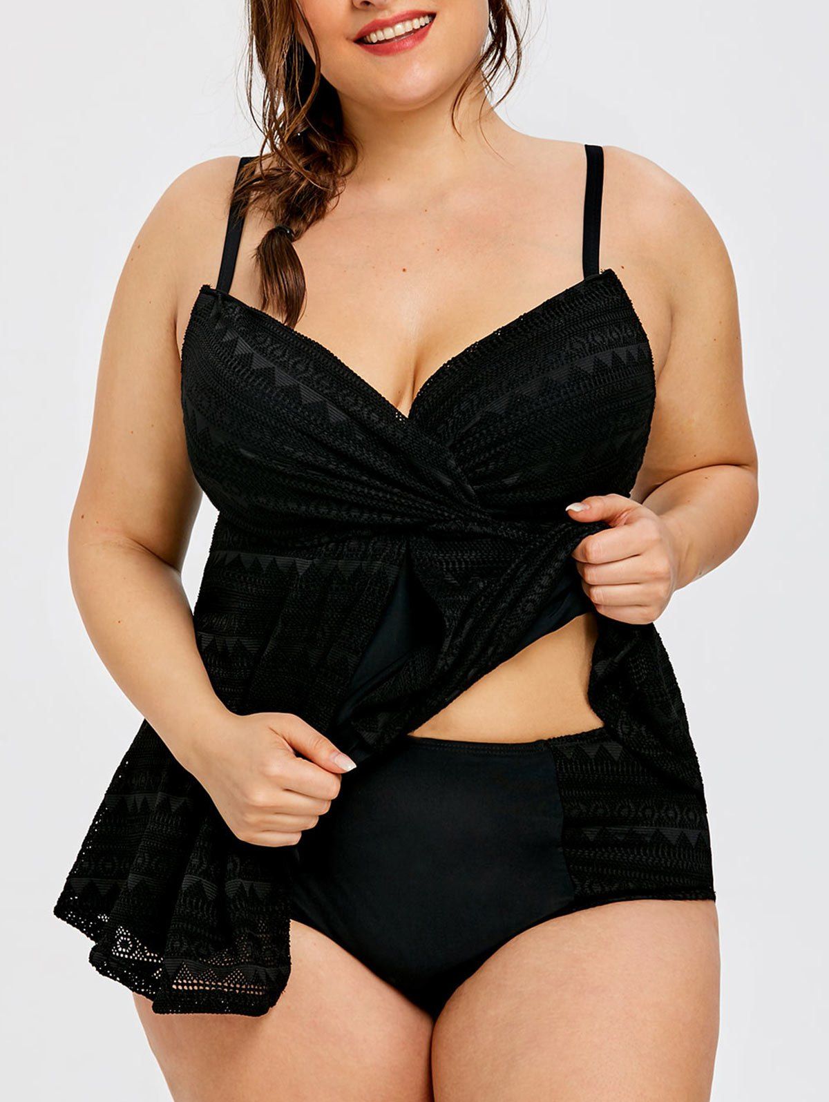 Openwork Plus Size Flyaway Tankini Set Discounted at only: US$ 20.99