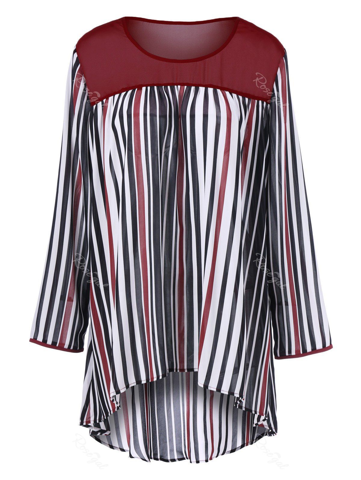 Plus Size High Low Hem Striped Blouse Discounted at only: US$ 18.82