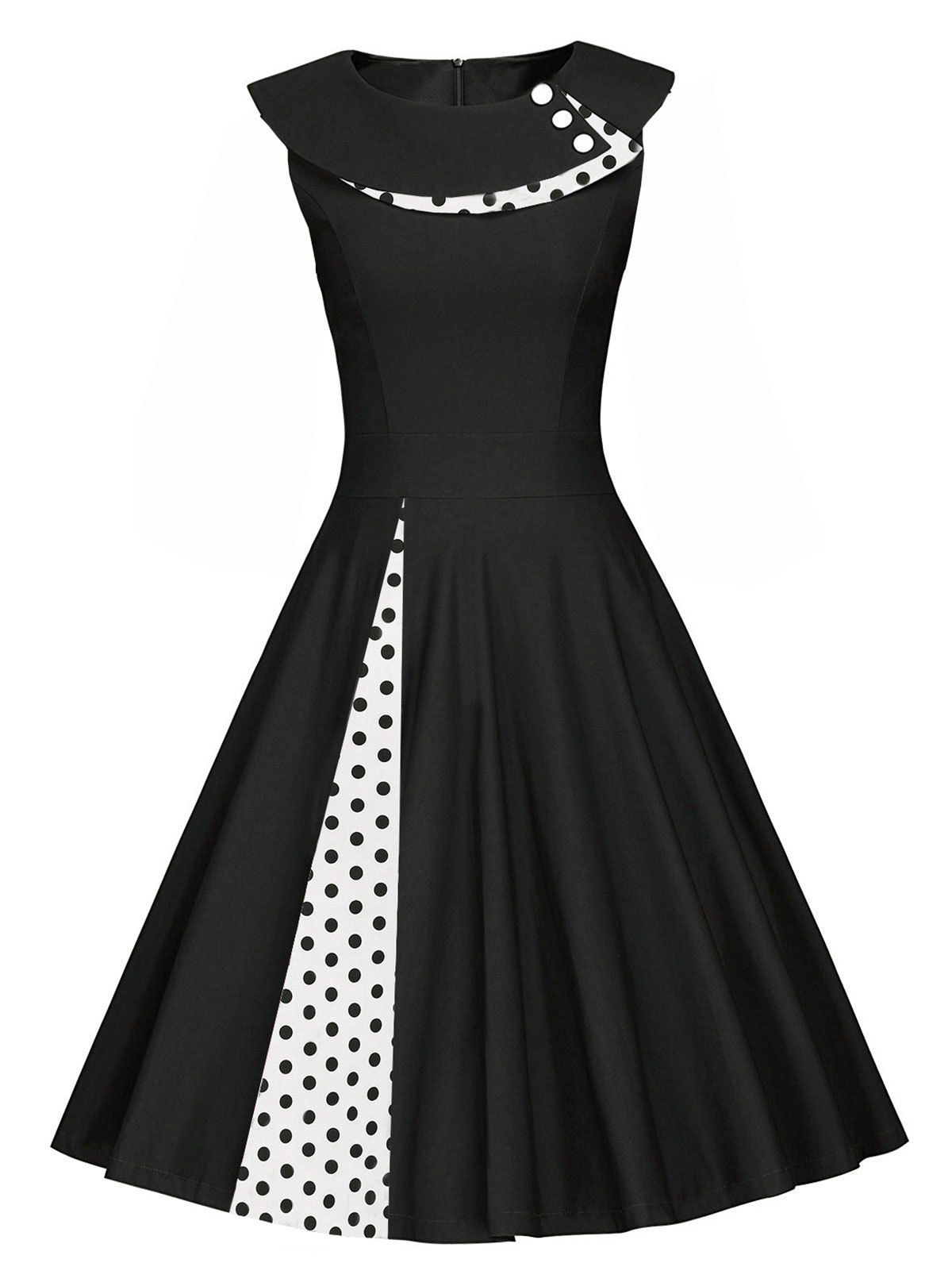 Plus Size Vintage Polka Dot Buttons Sleeveless Flare Dress Discounted at only: US$ 27.78