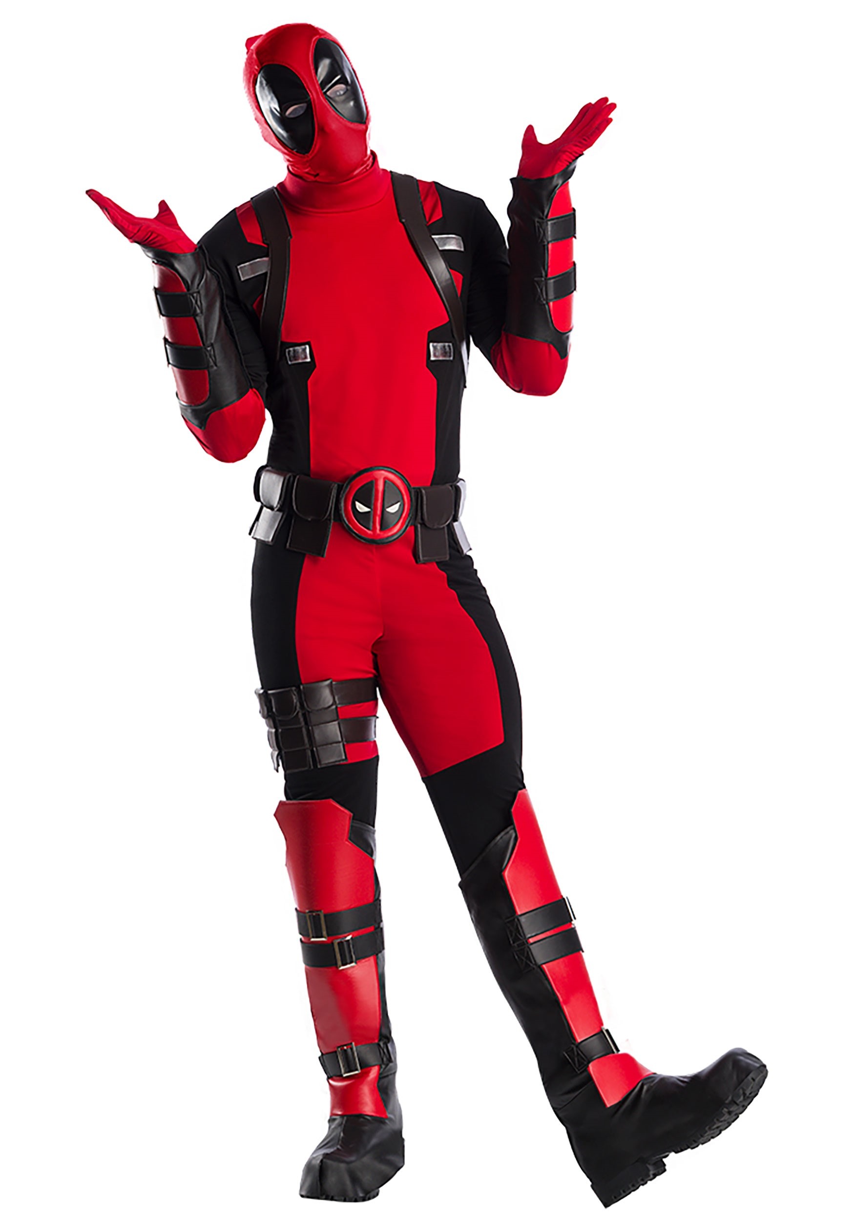 Wade the Tailor Do you think Deadpool makes his own costume? Just imagine it. Wade Wilson, hanging out at craft stores, trying to select the perfect shade of red for his jumpsuit. Painstakingly takes measurements. Hunching over a sewing machine. Sitting in his apartment wearing his tighty-whities as he hand-stitches details into his outfit. He pours all of his love into the outfit, until he has a finished outfit... only to have it torn up, muddied, and nearly destroyed during his next big battle with bad guys. Then, he has to start the whole process again... Yeah, on second thought, Deadpool definitely just buys his costume from someone else. There's no way he has time to hand make each of one of his costumes when he gets into dangerous and dirty escapades every week. He contracts that out with the oodles of money he makes on his mercenary missions. And if Deadpool himself doesn't make his own costume, then neither should you. Fun Details This officially licensed Deadpool costume is a Discounted at only: US$ 109.99